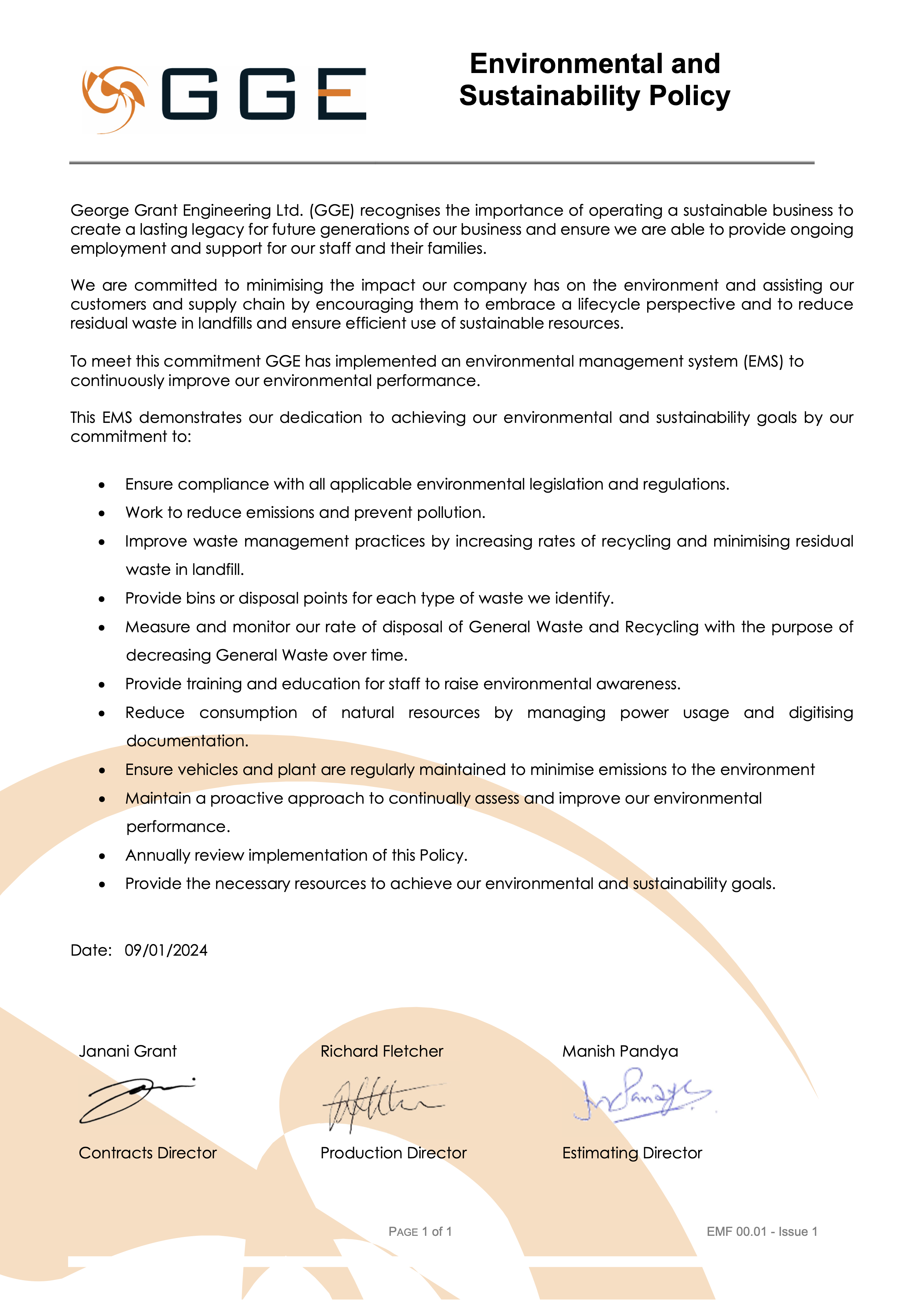George Grant Engineering Ltd (GGE) is committed to reducing environmental impact and supporting sustainable business practices.